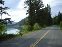 This is an absolutely incredible drive along a lonely road surrounded by spectacular scenery. Starting out on the east side of the Pend Oreille, drive across a bridge at the town of Usk, WA. You'll find yourself on a road that winds its way between the "Pend Oreille" River and a mountain range to the east. In spring this area is as green as Ireland and abounds with wildlife. You may spot deer, a brown bear and buffalo. The route starts out in the Kalispel Indian reservation in dense forests with a few stretches were it opens up so you get views of the river. Further north the scenery gets even prettier with some beautiful pasture land and wonderful river views. Then the route will descend into a box canyon for a short but nice run. When the road turns to gravel, slow down to enjoy the beautiful river scenery with the canyon wall backdrop. You'll see some nice homes perched on the buildable patches of land along the river.
