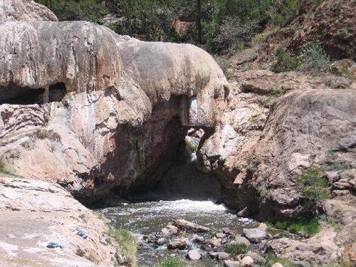 Soda Dam, west of the Yemez Reservation on State road 4.